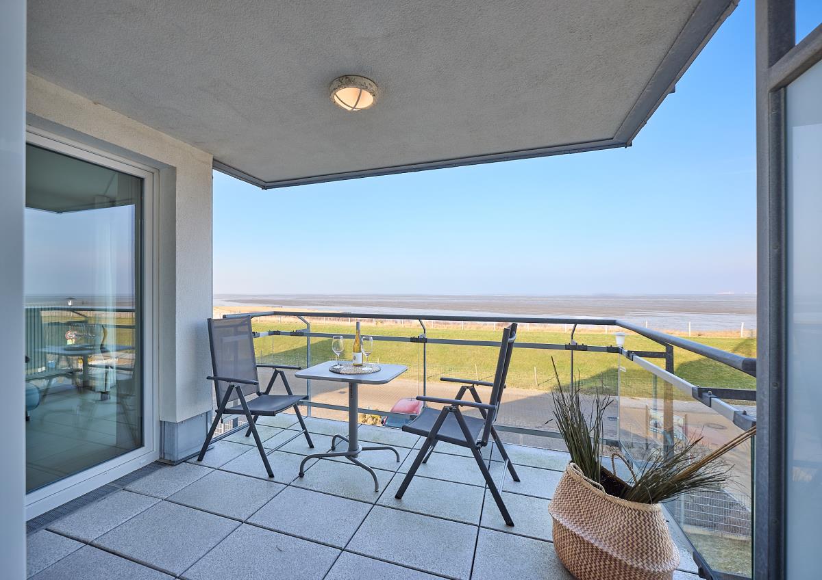Das moderne Badezimmer wird durch ein separates Gäste‑WC ergänzt – ideal für mehr Komfort. Vom Balkon sowie aus dem Wohn‑ und Schlafzimmer genießen Sie eine traumhafte Seesicht Richtung Schifffahrtslinie und bis zur Insel Neuwerk.