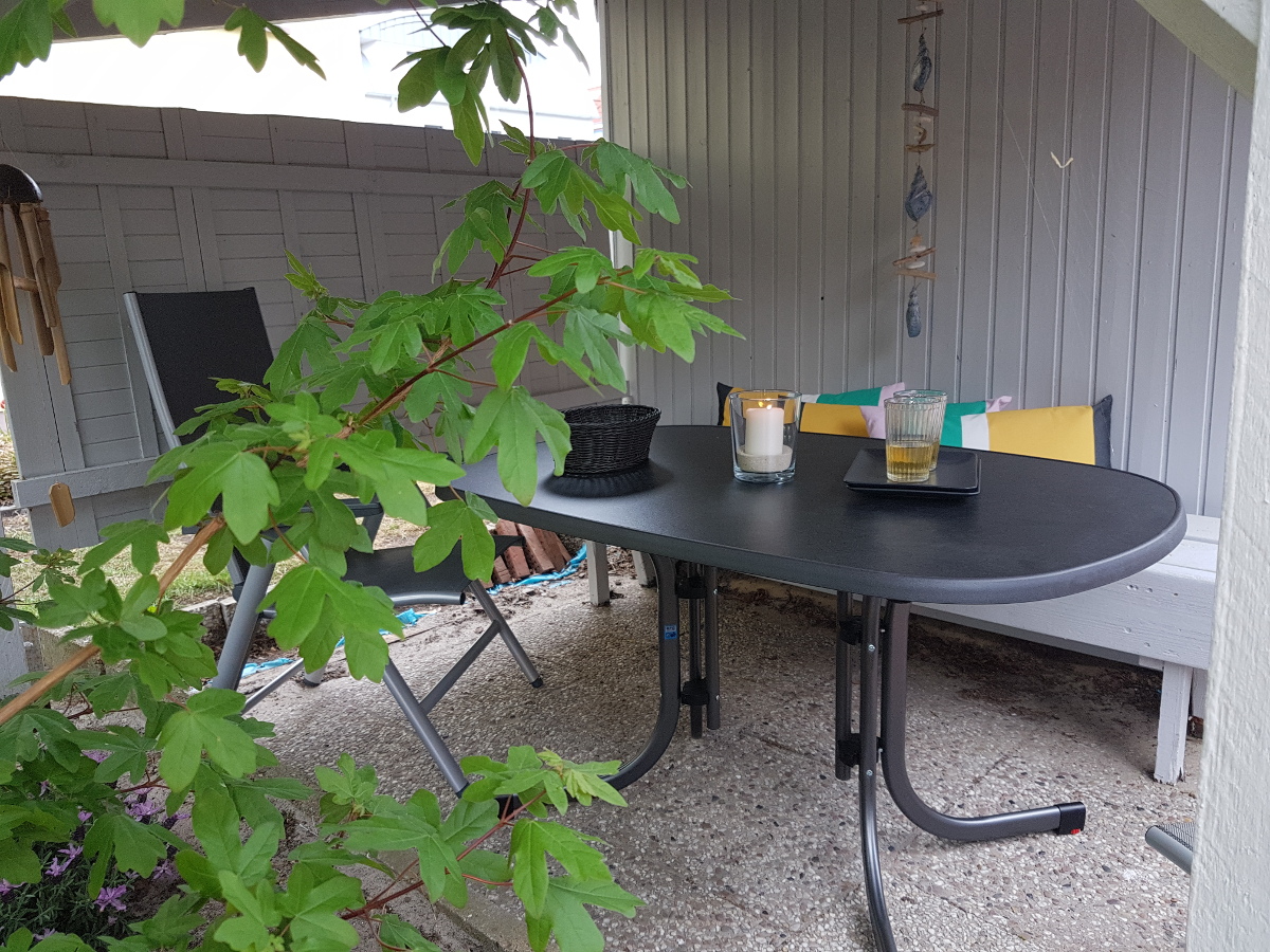 Die Terrasse lädt zu einem entspannten Frühstück im Sonnenschein oder zu gemütlichen Abendstunden im Freien ein. Der eigene kleine Garten bietet zusätzlichen Freiraum und eignet sich ideal für Familien mit Kindern, die hier ungestört spielen können.