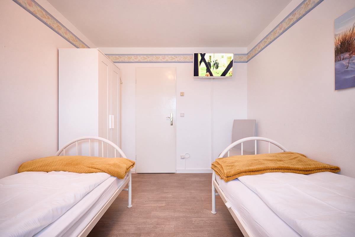 Die Wohnung bietet ein gemütliches Wohnzimmer, das zum Entspannen einlädt, sowie zwei separate Schlafzimmer. – Das erste Schlafzimmer ist mit einem hochwertigen Boxspring‑Doppelbett (180 x 200 cm) ausgestattet – ideal für erholsame Nächte. – Das zweite Schlafzimmer verfügt über zwei komfortable Einzelbetten (je 90 x 200 cm) und eignet sich perfekt für Kinder, Freunde oder mitreisende Familienmitglieder.