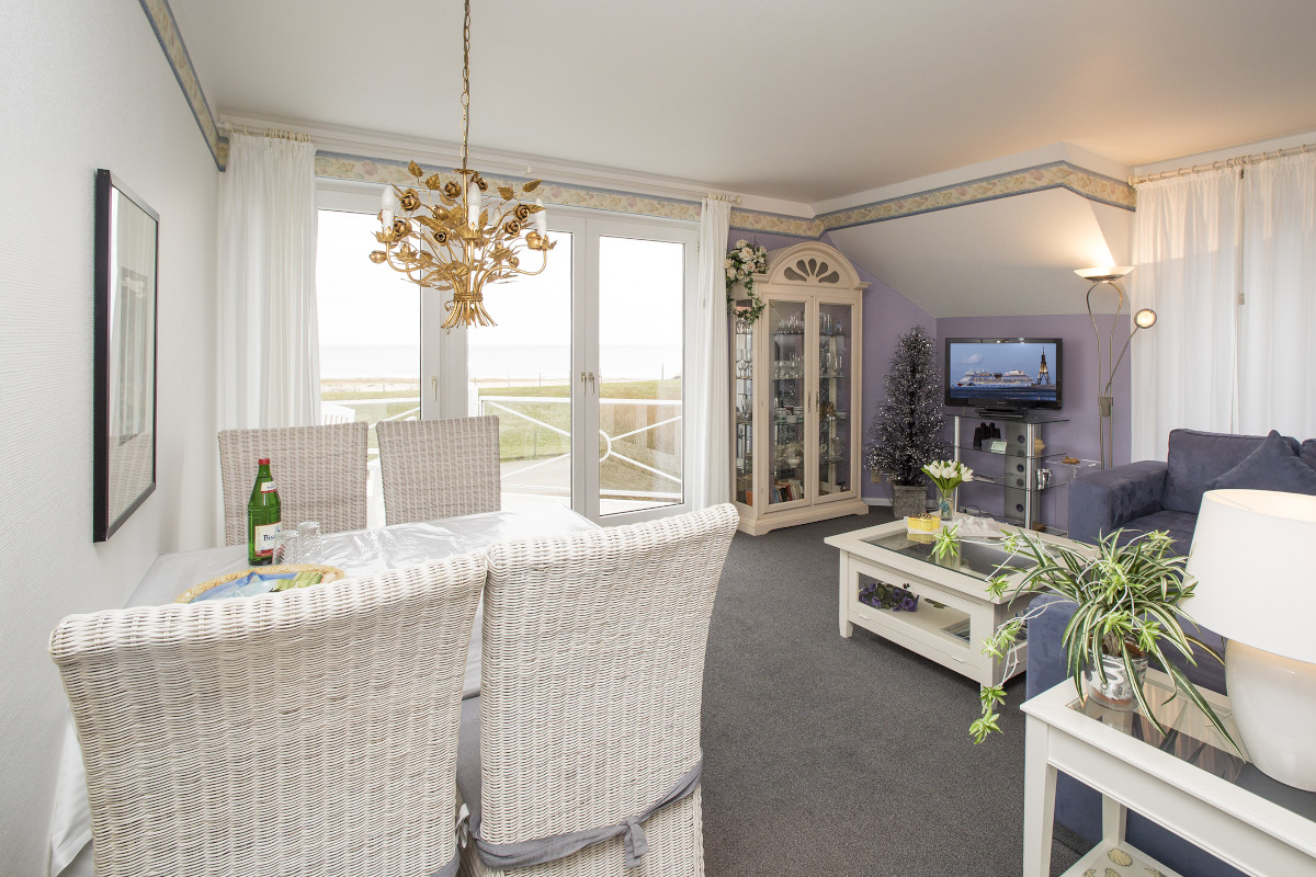 Die Ferienwohnung 6 im Haus an der Düne verbindet Meerblick, Komfort und eine hervorragende Lage – ideal für einen entspannten Urlaub an der Nordsee.