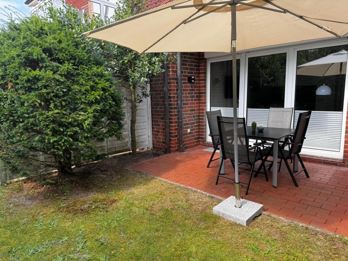 Vom Wohnzimmer aus gelangen Sie direkt auf die sonnige Südterrasse, die zum Entspannen an der frischen Nordseeluft einlädt.