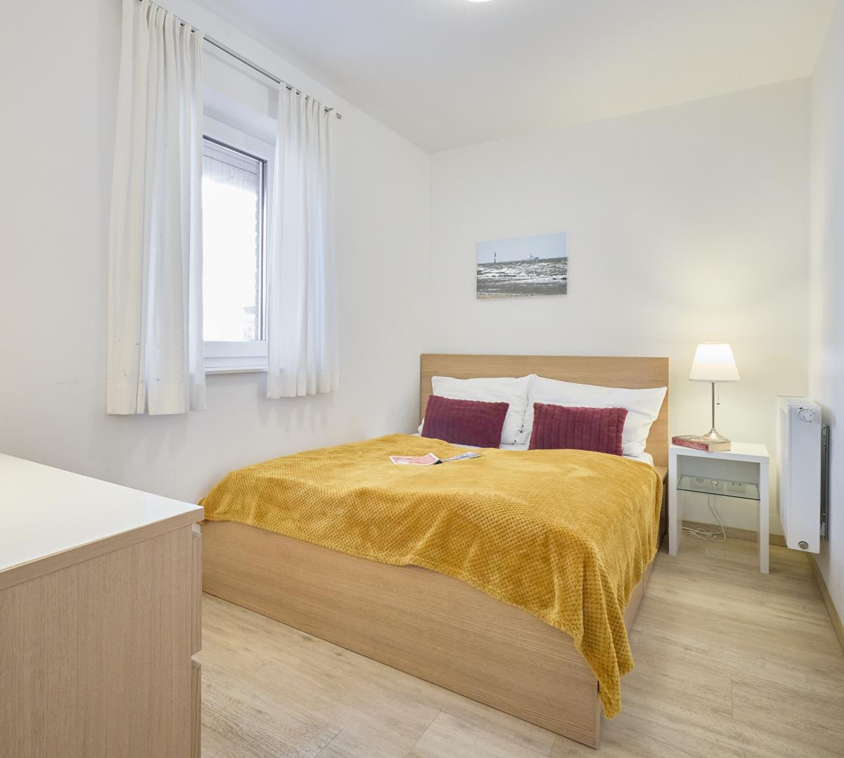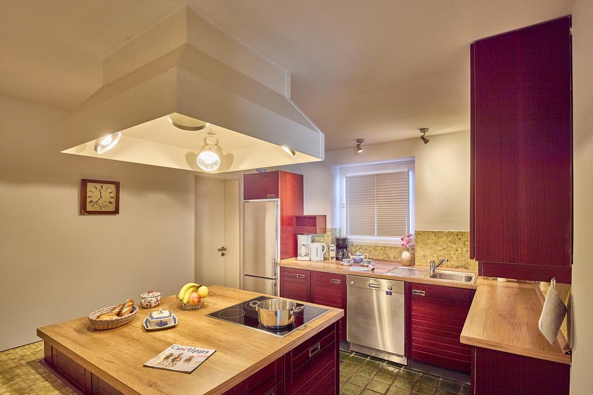Der große Wohnbereich mit seinem offenen Kamin bildet das Herzstück der Wohnung und lädt zu entspannten Abenden in wohliger Atmosphäre ein. Die angrenzende Küche bietet alles, was man für gemeinsame Mahlzeiten benötigt. Ein weiteres Highlight ist die eigene Sauna (Münzeinwurf), die Ihnen jederzeit zur Verfügung steht und für zusätzliche Erholung sorgt – perfekt nach einem langen Spaziergang am Meer.