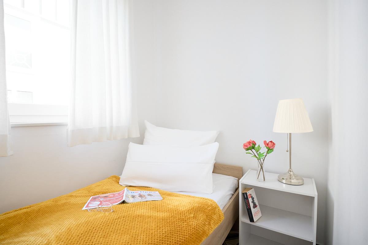 Auch kleine Hunde sind herzlich willkommen. Die Gebühr pro Nacht kann bei der Online‑Buchung bequem unter „optionale Leistungen“ hinzugebucht werden. Ebenso besteht die Möglichkeit, ein Mietwäsche‑Paket mit Bettwäsche, Handtüchern, Badelaken, Geschirrtüchern und Duschvorleger gegen Gebühr zu buchen – ebenfalls direkt über die optionalen Leistungen auswählbar.