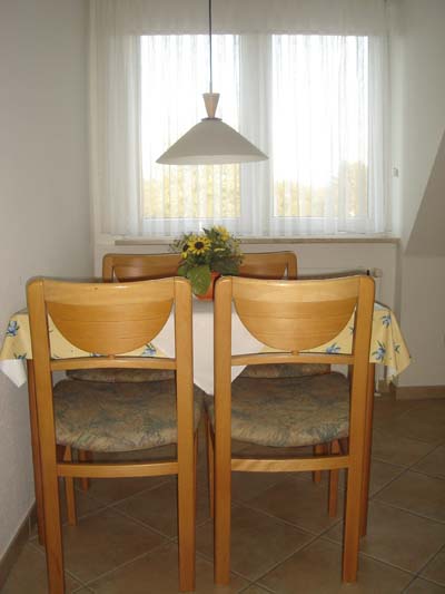 Der Wohnbereich ist gemütlich gestaltet und lädt zu gemeinsamen Stunden ein. Die separate Küche bietet alles, was Sie für die Selbstversorgung benötigen. Von der Wohnung aus gelangen Sie direkt auf die Terrasse, die ideal zum Entspannen an der frischen Nordseeluft geeignet ist.