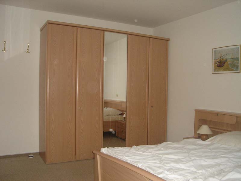 Die Wohnung verfügt über zwei große Schlafzimmer, die jeweils mit einem komfortablen Doppelbett (180 x 200 cm) ausgestattet sind. So genießen alle Gäste erholsame Nächte und ausreichend Privatsphäre. Das Badezimmer bietet sowohl eine Badewanne als auch eine Dusche – perfekt für entspannte Momente nach einem Tag am Meer.