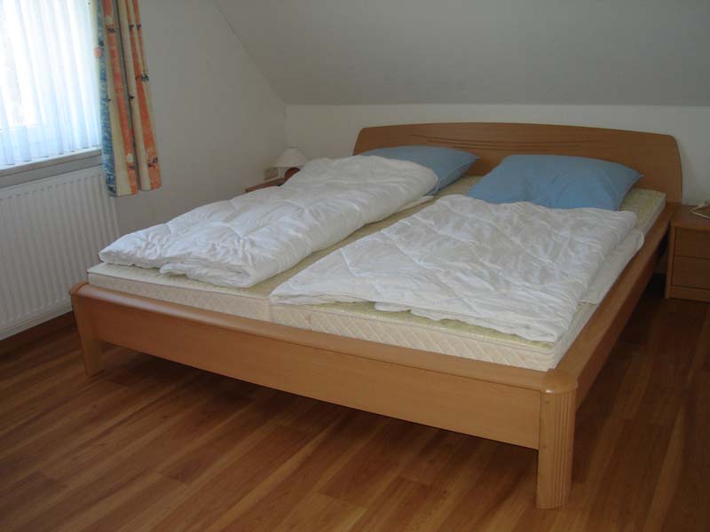 Die Wohnung verfügt über zwei große Schlafzimmer, die jeweils mit einem komfortablen Doppelbett (180 x 200 cm) ausgestattet sind. Beide Räume bieten viel Platz und sorgen für erholsame Nächte – perfekt für Gäste, die Wert auf Komfort und Privatsphäre legen.