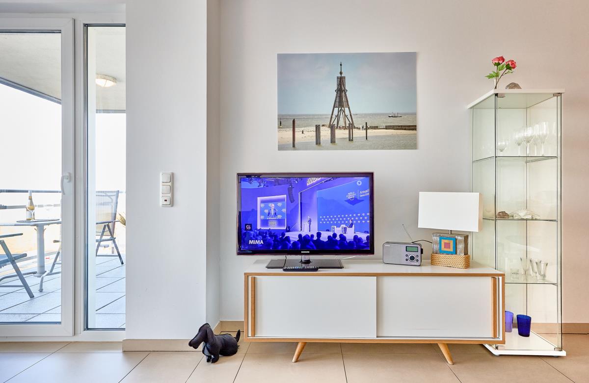 Das moderne Badezimmer wird durch ein separates Gäste‑WC ergänzt – ideal für mehr Komfort. Vom Balkon sowie aus dem Wohn‑ und Schlafzimmer genießen Sie eine traumhafte Seesicht Richtung Schifffahrtslinie und bis zur Insel Neuwerk.
