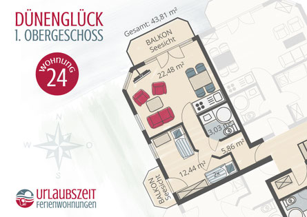 Die Ferienwohnung 24 im Haus Dünenglück verbindet Meerblick, Strandnähe, Komfort und eine familienfreundliche Ausstattung – eine ideale Wahl für einen erholsamen Urlaub in Cuxhaven‑Duhnen.