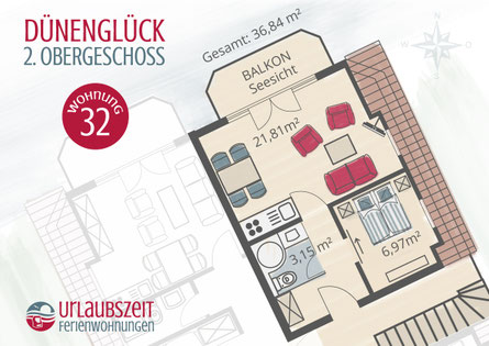 Die Ferienwohnung 32 im Haus „Dünenglück“ im Dünenweg 23 in Cuxhaven‑Duhnen bietet eine moderne, gemütliche Unterkunft in unmittelbarer Strandnähe. Das Haus liegt direkt hinter dem Deich, sodass Sie den feinen Sandstrand und die Promenade in wenigen Minuten zu Fuß erreichen. Ein besonderes Highlight dieser Wohnung ist die volle Seesicht – sowohl vom Wohnbereich als auch vom Balkon genießen Sie einen herrlichen Blick aufs Wasser.