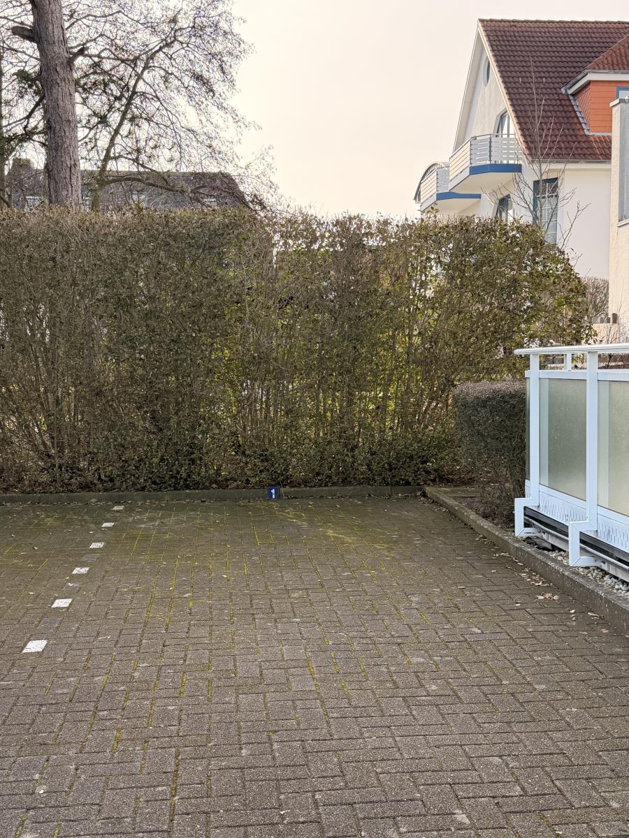 Auf der Rückseite des Hauses befinden sich die Parkmöglichkeiten für die Gäste. Für Ihren Aufenthalt steht Ihnen dort ein kostenfreier Außenstellplatz mit der Nummer 1 zur Verfügung – bequem, sicher und direkt am Haus.
