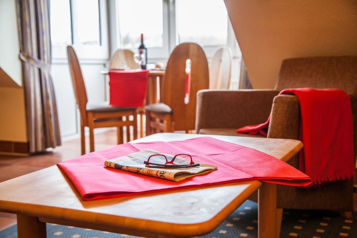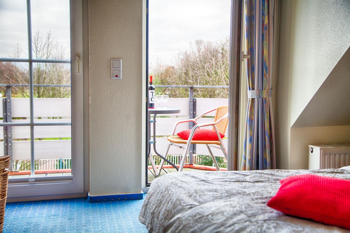 Der Wohnraum ist hell und freundlich gestaltet und verfügt über eine integrierte Küche, einen gemütlichen Essplatz sowie eine Doppel‑Schlafcouch, die bei Bedarf zusätzlichen Schlafplatz bietet. Das separate Schlafzimmer ist mit einem komfortablen Doppelbett ausgestattet und sorgt für erholsame Nächte. Für zusätzlichen Komfort kann ein Mietwäsche‑Paket mit Bettwäsche, Handtüchern, Badelaken, Geschirrtüchern und Duschvorleger gegen Gebühr hinzugebucht werden. Dies lässt sich bei Online‑Buchungen bequem unter „optionale Leistungen“ auswählen.