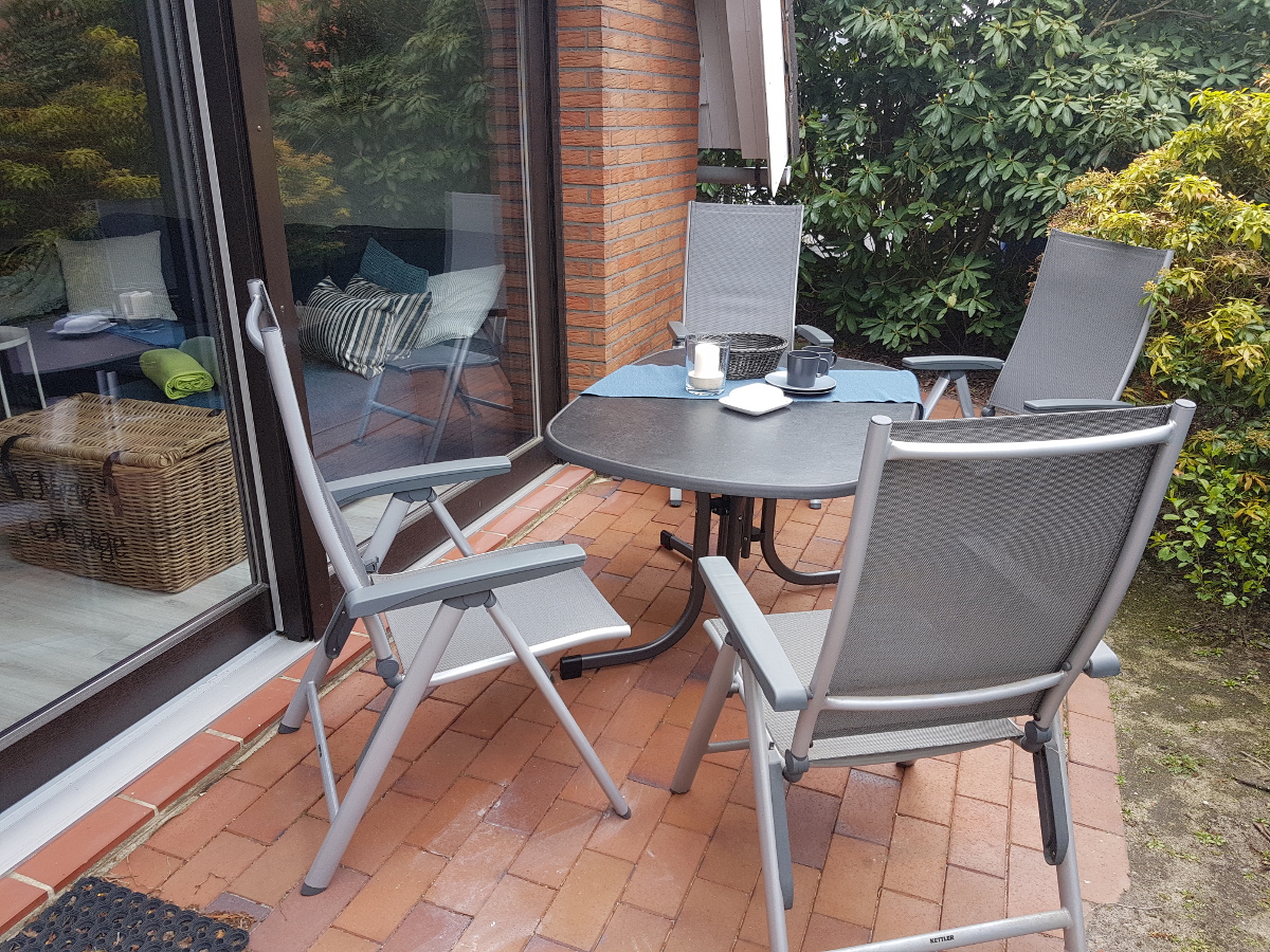 Die Terrasse lädt zu einem entspannten Frühstück im Sonnenschein oder zu gemütlichen Abendstunden im Freien ein. Der eigene kleine Garten bietet zusätzlichen Freiraum und eignet sich ideal für Familien mit Kindern, die hier ungestört spielen können.