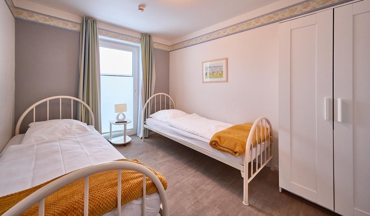 Die Wohnung bietet ein gemütliches Wohnzimmer, das zum Entspannen einlädt, sowie zwei separate Schlafzimmer. – Das erste Schlafzimmer ist mit einem hochwertigen Boxspring‑Doppelbett (180 x 200 cm) ausgestattet – ideal für erholsame Nächte. – Das zweite Schlafzimmer verfügt über zwei komfortable Einzelbetten (je 90 x 200 cm) und eignet sich perfekt für Kinder, Freunde oder mitreisende Familienmitglieder.