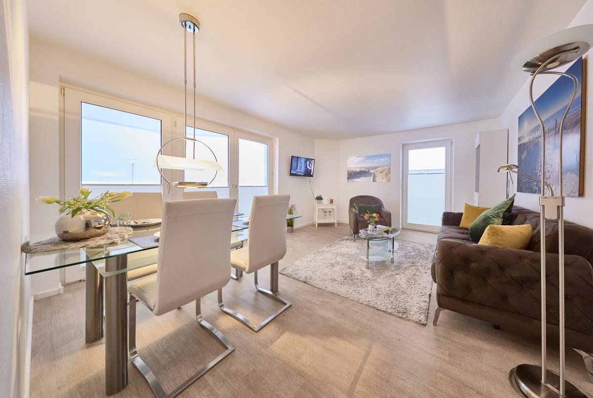 Ein echtes Highlight ist der schöne Balkon, der viel Platz zum Entspannen bietet – ideal für ein sonniges Frühstück oder gemütliche Abendstunden an der frischen Nordseeluft.