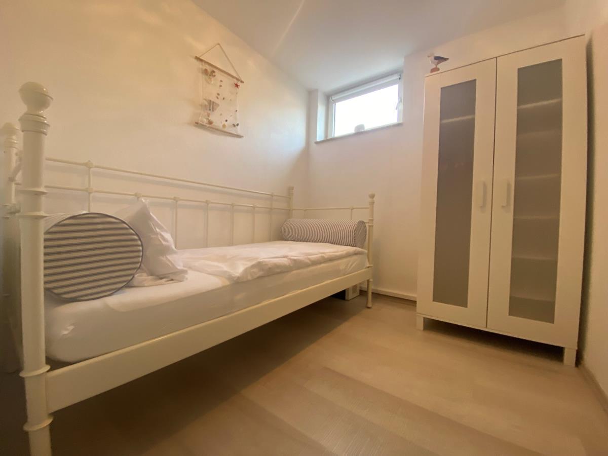 Damit eignet sich die Wohnung ideal für Paare, kleine Familien oder Gäste, die getrennte Schlafmöglichkeiten bevorzugen. Der helle Wohn‑ und Essbereich mit integrierter Küchenzeile bildet das Herzstück der Wohnung und lädt zu gemütlichen Stunden ein – sei es beim Kochen, Essen oder Entspannen nach einem Tag am Meer. Ein modernes Badezimmer mit Dusche, ein Flur sowie ein praktischer Abstellraum runden die Ausstattung ab.