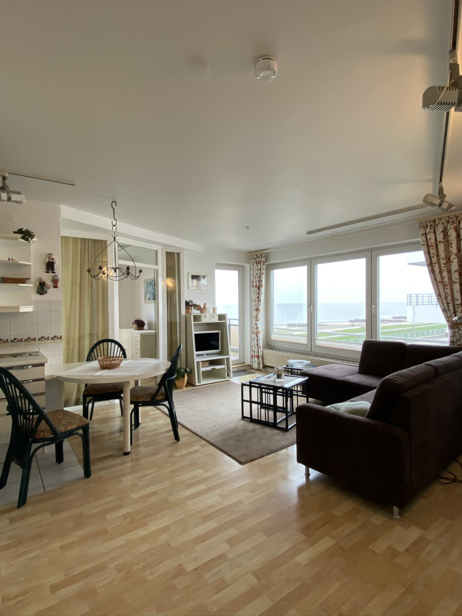 Die Ferienwohnung 26 im Haus Meeresbrandung in Cuxhaven‑Duhnen bietet Ihnen eine komfortable, strandnahe Unterkunft mit voller Seesicht. Vom Wohnbereich wie auch vom Balkon aus genießen Sie einen herrlichen Blick auf die Nordsee, das Wattenmeer und das lebendige Strandleben – ideal, um den Urlaub in entspannter Atmosphäre zu verbringen. Die Wohnung verfügt über ein Wohnschlafzimmer mit Schrankdoppelbett, ein separates Schlafzimmer, eine praktische Küchenzeile, ein Badezimmer sowie einen Balkon, der zum Verweilen einlädt.