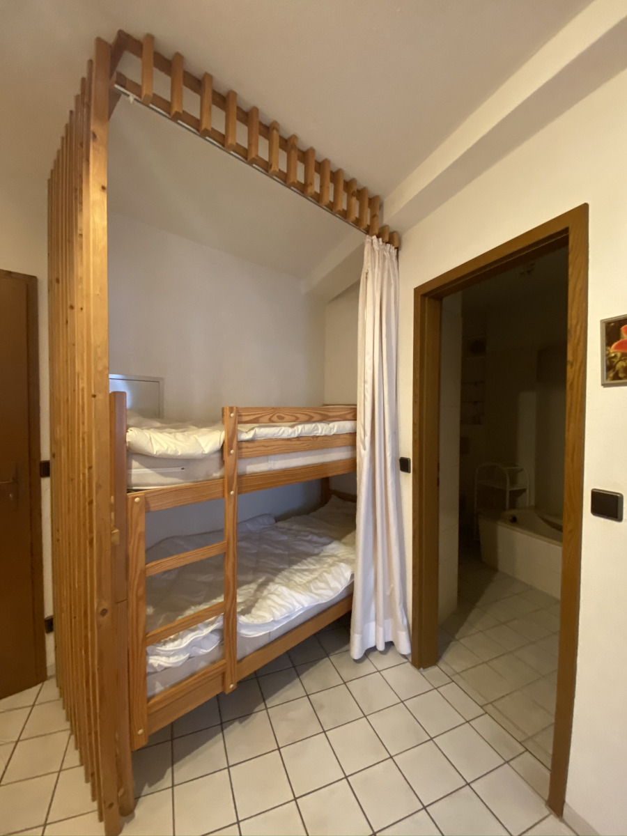 Die Wohnung verfügt über eine offene Küchenzeile, die ideal für die Selbstversorgung ausgestattet ist. Das separate Schlafzimmer bietet ein komfortables Doppelbett (180 x 200 cm), Nachttische sowie einen geräumigen Kleiderschrank. Eine weitere Schlafmöglichkeit befindet sich im Flur: ein praktisches Kinderhochbett, das besonders für Familien ideal ist. Zusätzlich bietet die Wohnung ein Wohnschlafzimmer, eine Küchenzeile, ein Badezimmer sowie einen Balkon mit Meerblick.
