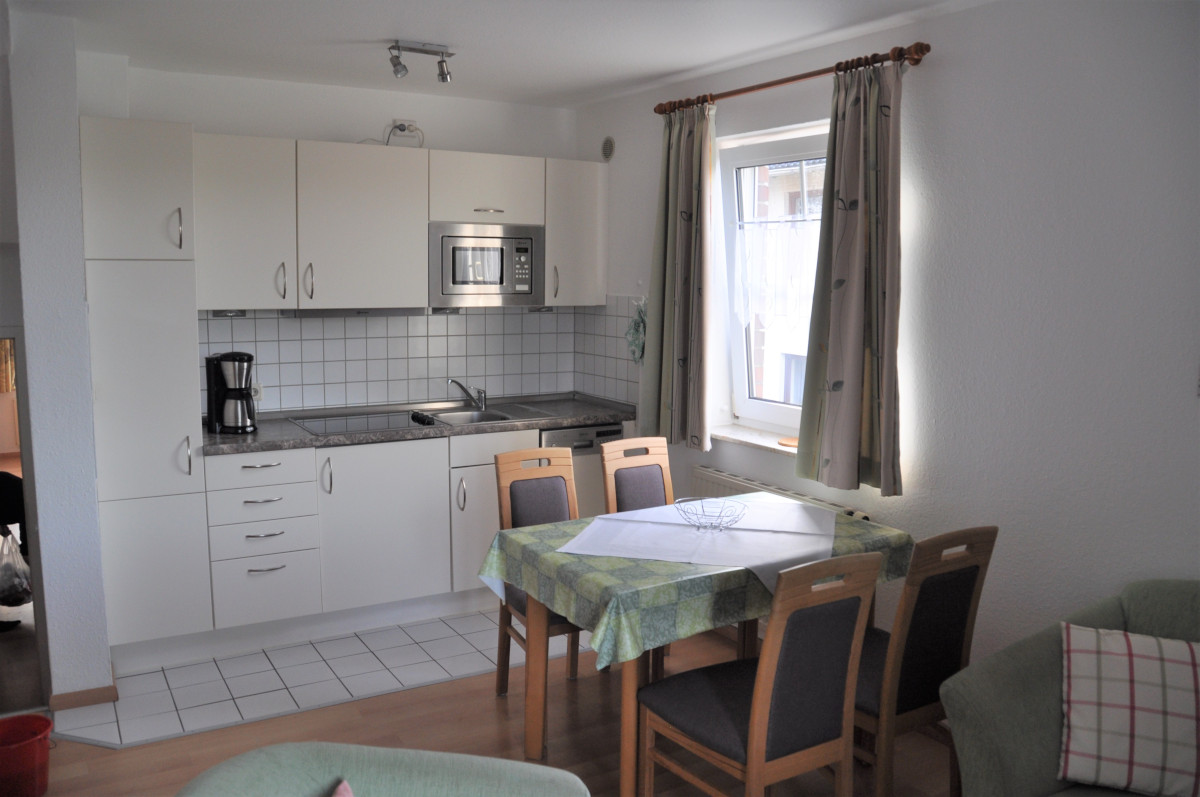 Die Wohnung verfügt über ein helles Wohnzimmer mit integrierter Küchenzeile, das zum Kochen, Entspannen und gemeinsamen Verweilen einlädt. Zwei separate Schlafzimmer bieten komfortable Schlafmöglichkeiten: • Ein Schlafzimmer ist mit einem Doppelbett (180 × 200 cm) ausgestattet. • Das zweite Schlafzimmer verfügt über zwei Einzelbetten (je 90 × 200 cm) – ideal für Kinder, Freunde oder mitreisende Familienmitglieder.