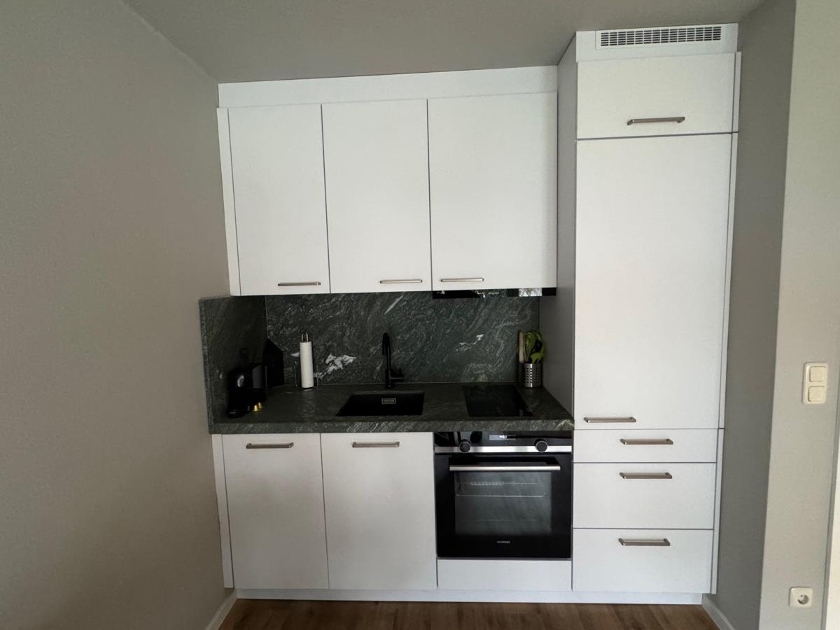 Der helle Wohnbereich verfügt über eine gemütliche Sitzecke mit Sofa, Smart‑TV, Radio sowie einen Esstisch mit vier Stühlen. Die angrenzende offene Küchenzeile ist hochwertig ausgestattet und bietet alles, was Sie für einen komfortablen Aufenthalt benötigen: