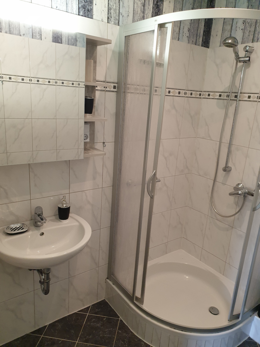 Die praktische Einbauküche ist mit Mikrowelle, Wasserkocher, Toaster und weiteren Küchenutensilien ausgestattet – ideal für die Selbstversorgung im Urlaub. Das Badezimmer verfügt über eine Dusche und bietet alles, was Sie für den täglichen Komfort benötigen.
