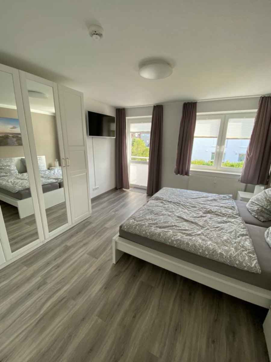Die Ferienwohnung 8 in der Villa Döser Strand in Cuxhaven-Döse ist eine helle, gemütliche und modern ausgestattete 2‑Zimmer‑Wohnung, die sich ideal für bis zu 4 Personen eignet. Nur wenige Gehminuten vom Strand entfernt, bietet sie die perfekte Unterkunft für einen erholsamen Nordseeurlaub in einer der beliebtesten Ferienregionen Cuxhavens. Das freundliche Schlafzimmer verfügt über ein großes Doppelbett (180 x 200 cm), einen geräumigen Kleiderschrank, zwei Nachtschränke sowie einen eigenen Fernseher. Von hier aus gelangen Sie direkt auf einen der beiden Balkone, die zu entspannten Stunden an der frischen Nordseeluft einladen.