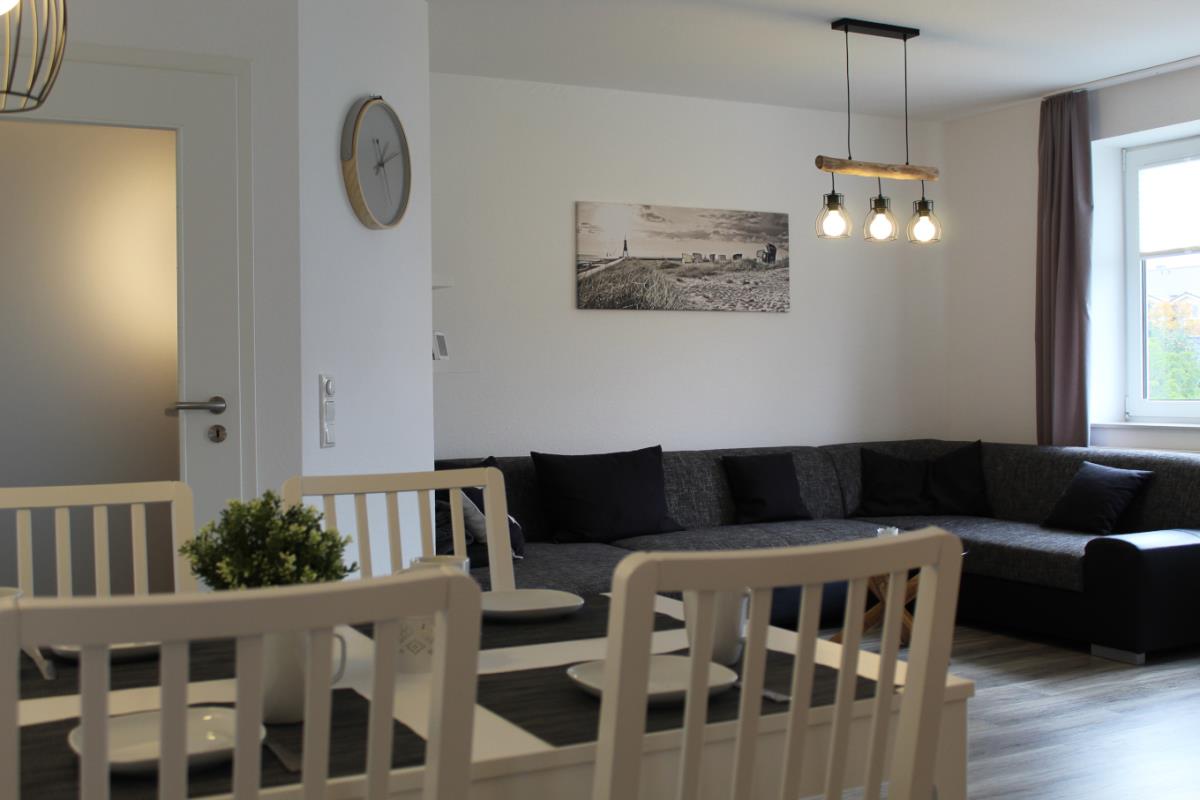 Zur Ausstattung der Ferienwohnung gehören WLAN, Waschmaschine, Trockner, ein Fahrradkeller, ein gepflegter Gemeinschaftsgarten sowie ein eigener Tiefgaragenstellplatz, der Ihnen während Ihres gesamten Aufenthalts zur Verfügung steht – ein großer Vorteil in der beliebten Ferienregion Döse.