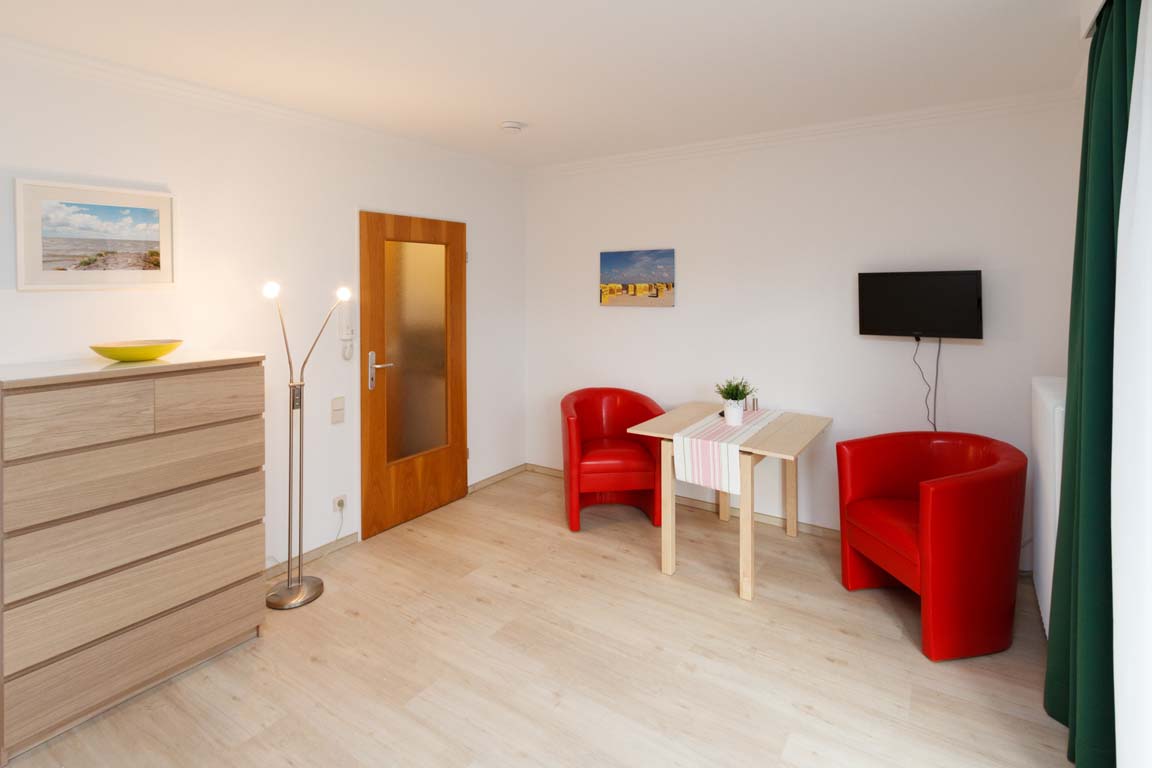 Dieses Ein‑Raum‑Appartement ist die perfekte Wahl für Gäste, die eine gemütliche, sonnige und gut ausgestattete Ferienwohnung suchen – mit der flexiblen Möglichkeit, bei Bedarf zusätzlichen Raum durch Wohnung 7 zu schaffen. Hier genießen Sie Ruhe, Komfort und die Nähe zur Nordsee in einer entspannten, freundlichen Atmosphäre.